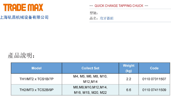 • 產(chǎn)品描述:攻牙器組TH1/MT2*TCS1B/7P 伸縮攻牙器組THL140/MT2*TCS1B/7P 浮動攻牙器組THP/MT2*TCS1B/7P