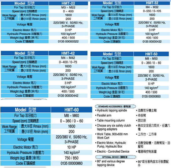 • Product description: With T slot oil pressure tapping machine: HMT22, 32,42,50,60 Without T slot oil pressure tapping machine: HM22, 32,42,50,60