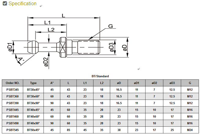 BT-PULL STUDS BT-PULL STUDS 15°,45°,60°,90°